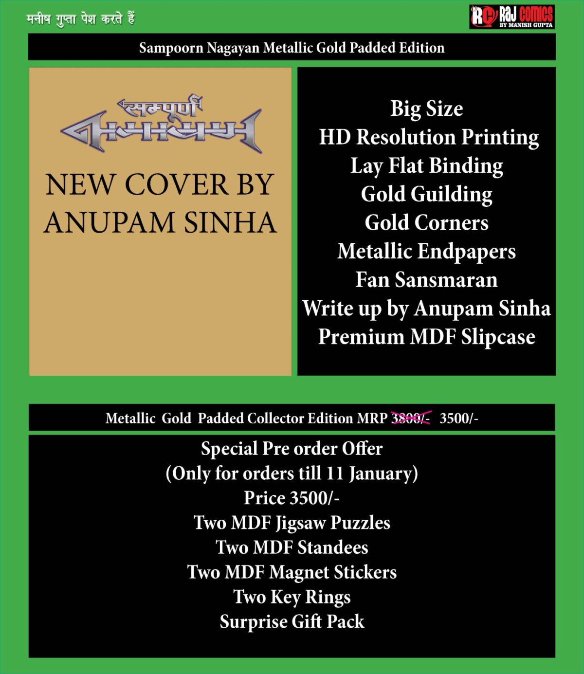 Nagayan Metallic Gold Padded WITH SLIPCASE by Manish ji (NO Novelties)