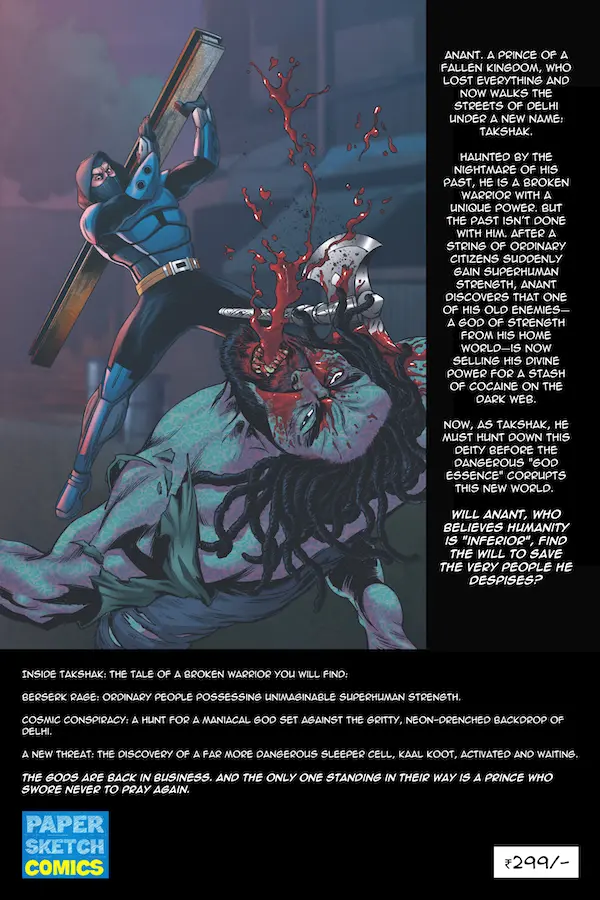 Takshak is an urban fantasy comic where gods, drugs, power, and humanity collide.